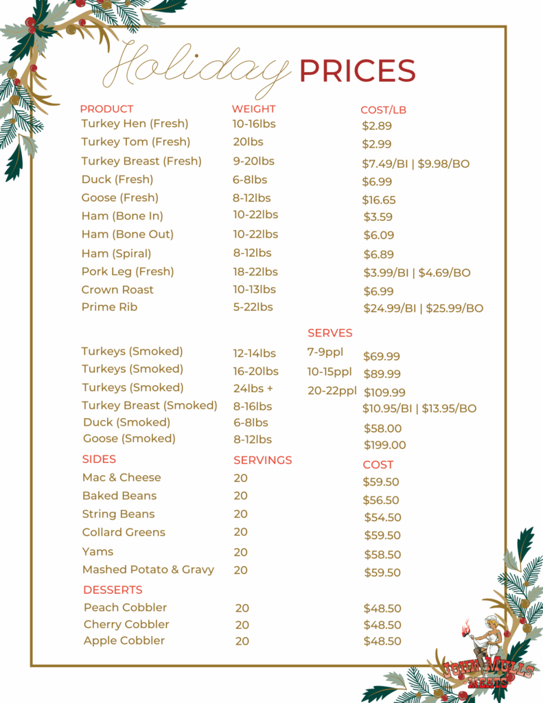 Christmas Holiday Orders Taken 12/1/2025 thru 12/20/2025